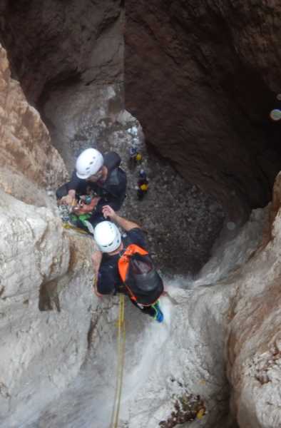 Λόγω του ότι ο βηματισμός μας μπορεί να προκαλέσει μικρές καταπτώσεις βράχων θα πρέπει να κινούμαστε αρκετά προσεκτικά, ενώ το πρώτο ραπέλ πρέπει να γίνει από δένδρο που βρίσκεται στην δεξιά όχθη, όπως κατεβαίνουμε.